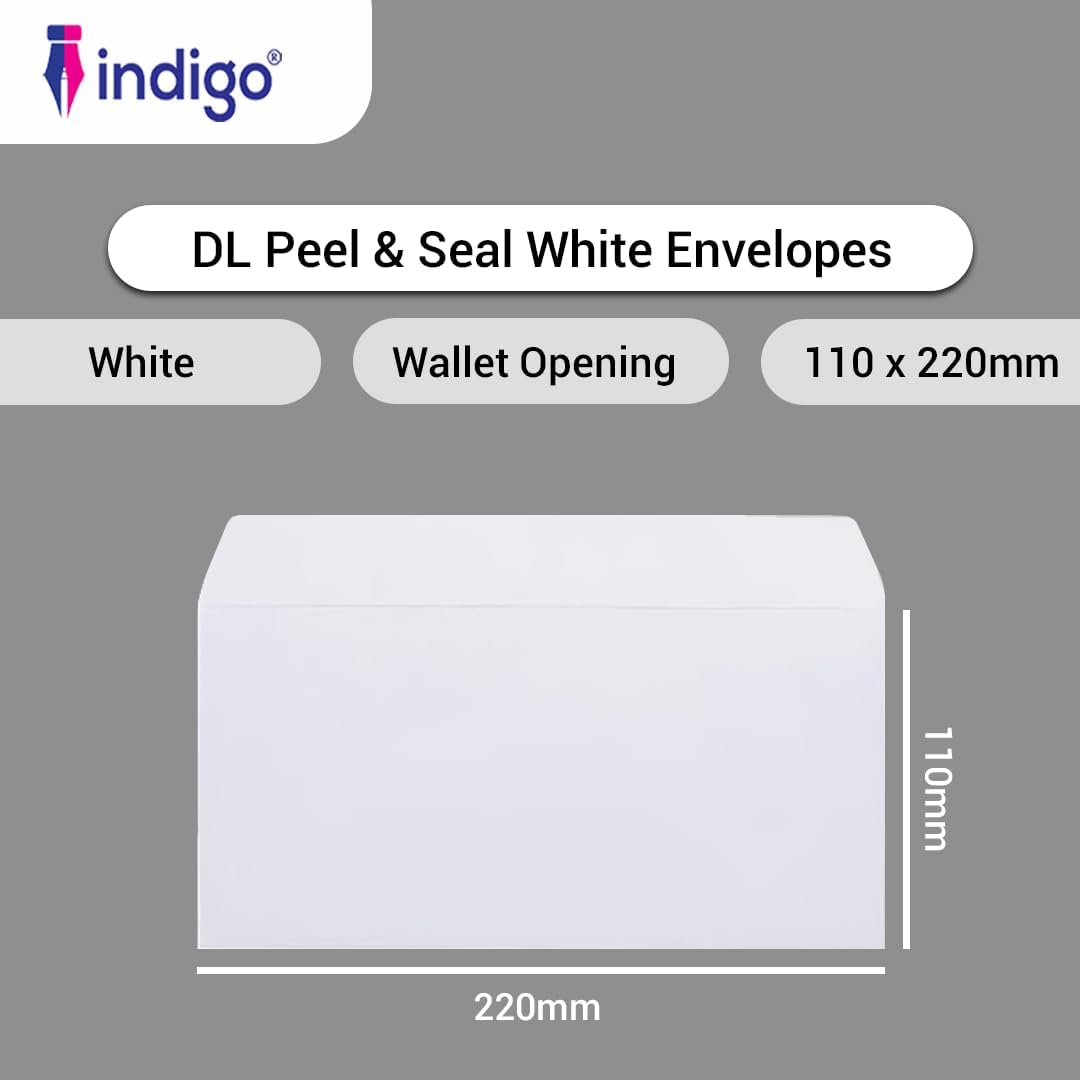 Sized at 110 x 220mm, these DL envelopes are ideal for A4 paper folded into thirds, making them perfect for sending letters, invoices, statements, and business correspondence. Convenient, reliable, and professional, Indigo® Peel & Seal envelopes are a great choice for offices, schools, and everyday use.