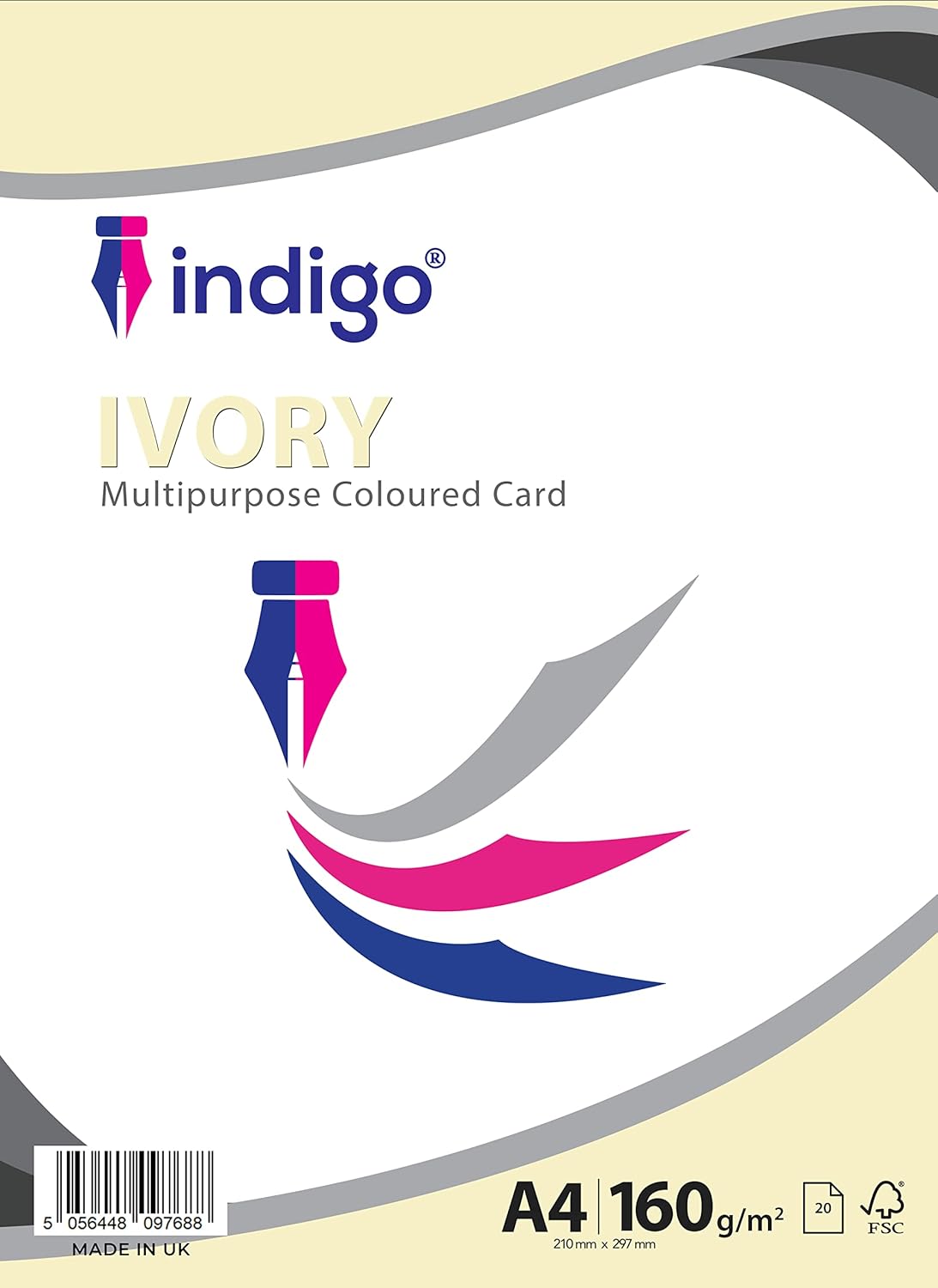 The Indigo® A4 160gsm Ivory Coloured Paper – 20 Sheets offers a touch of elegance and quality for both creative and professional projects. With its soft ivory tone and premium 160gsm weight, this paper is ideal for invitations, certificates, menus, craft projects, school work, and stylish business presentations. The smooth finish provides excellent print performance, making it suitable for both inkjet and laser printers, as well as copiers.