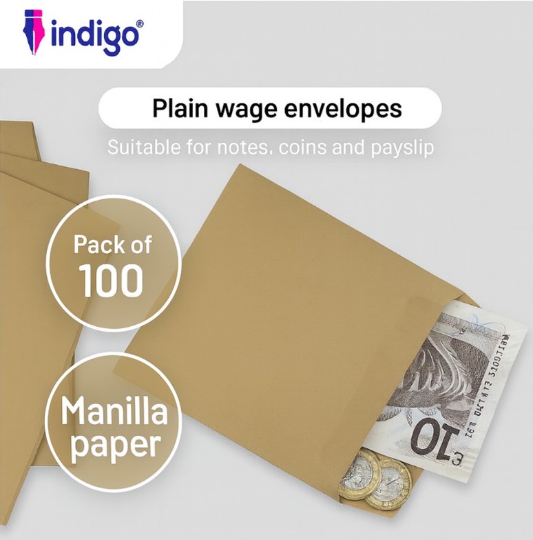Organise cash, coins, payslips, and small documents with ease using Indigo® Manilla Plain Wage Envelopes 80gsm – Pack of 100. Crafted from durable 80gsm manilla paper, these envelopes are designed to be strong enough to hold notes, coins, and important slips without tearing. Their compact size makes them ideal for wages, dinner money, seeds, tokens, donations, and more, offering versatile use for both home and business needs.
