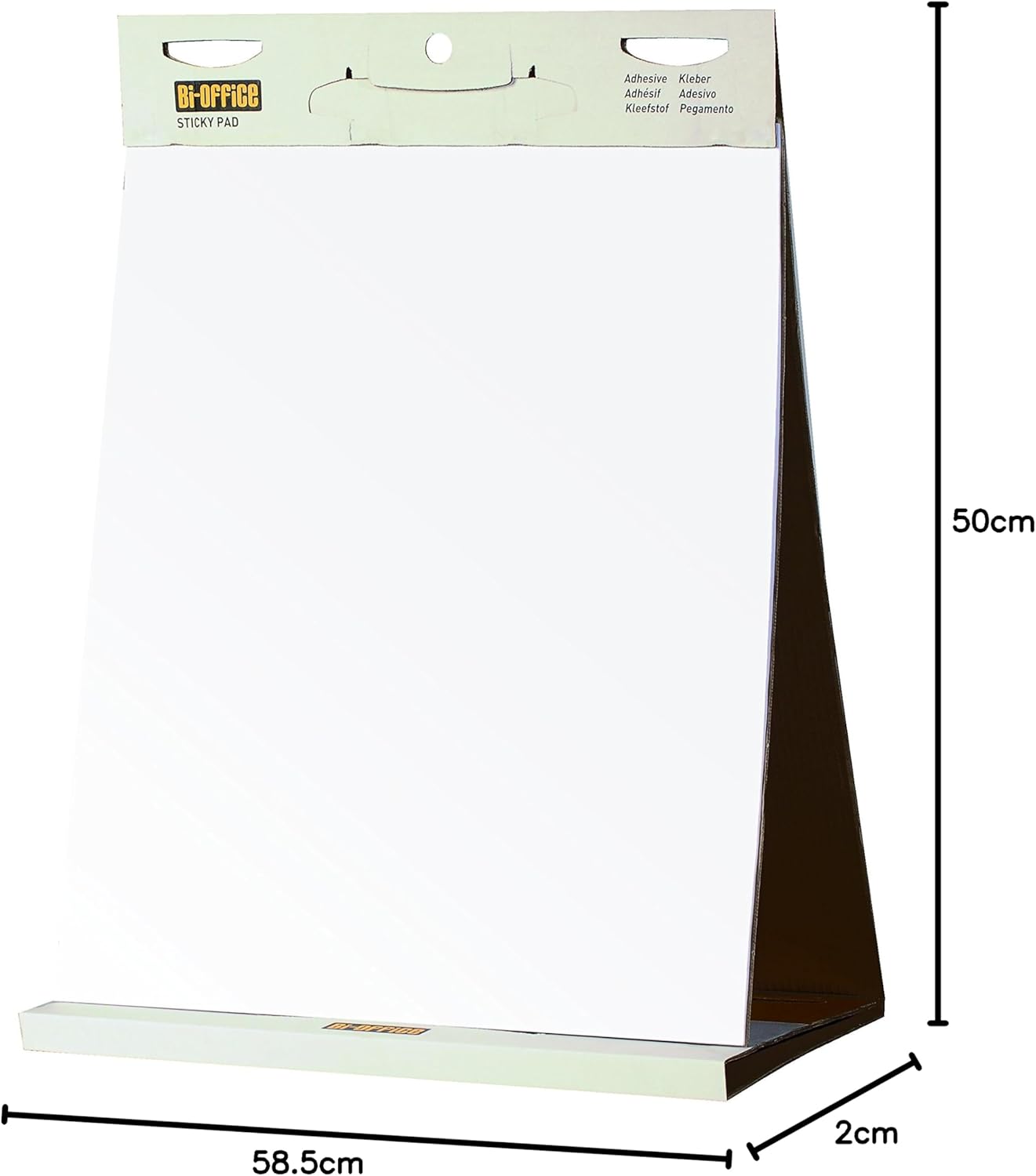 Measuring 58.5 x 50 cm, the pad is compact yet spacious, making it ideal for desktops or small group discussions. The self-stick backing allows sheets to be removed cleanly and re-positioned on walls, doors, or boards, ensuring your notes and ideas remain visible. With 20 easy-tear sheets per pad, it’s a reliable choice for business, education, or training environments.