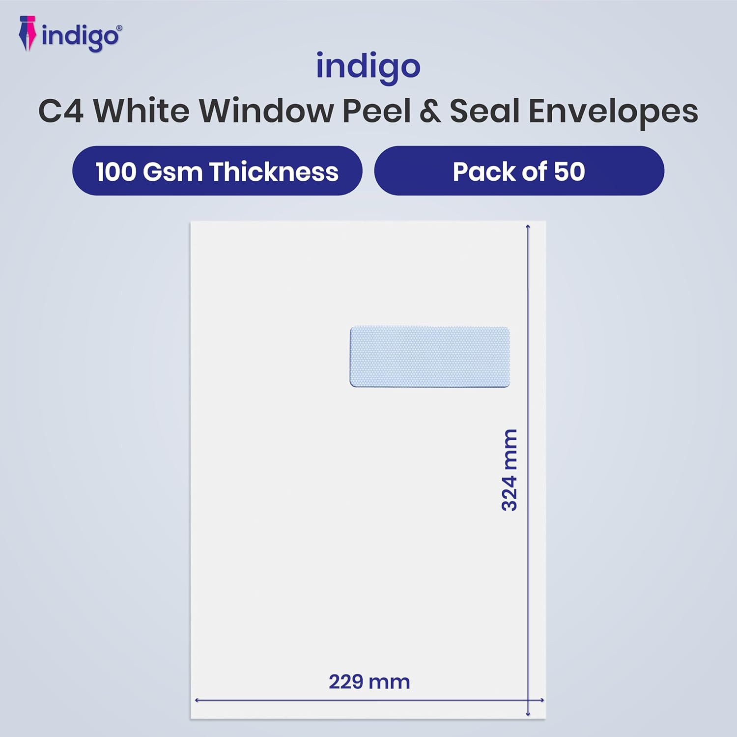 Keep your correspondence professional and secure with Indigo® C4 White Peel & Seal Window Envelopes. Designed to fit A4 documents perfectly without folding, these premium envelopes feature a convenient window for address visibility, saving time on manual labelling. Made from strong 100gsm paper, they offer durability and a clean white finish for business, legal, and personal use. The reliable peel & seal strip ensures tamper-proof closure while maintaining efficiency. Ideal for offices, schools, and home use, this pack of 100 provides excellent value for bulk mailing needs.