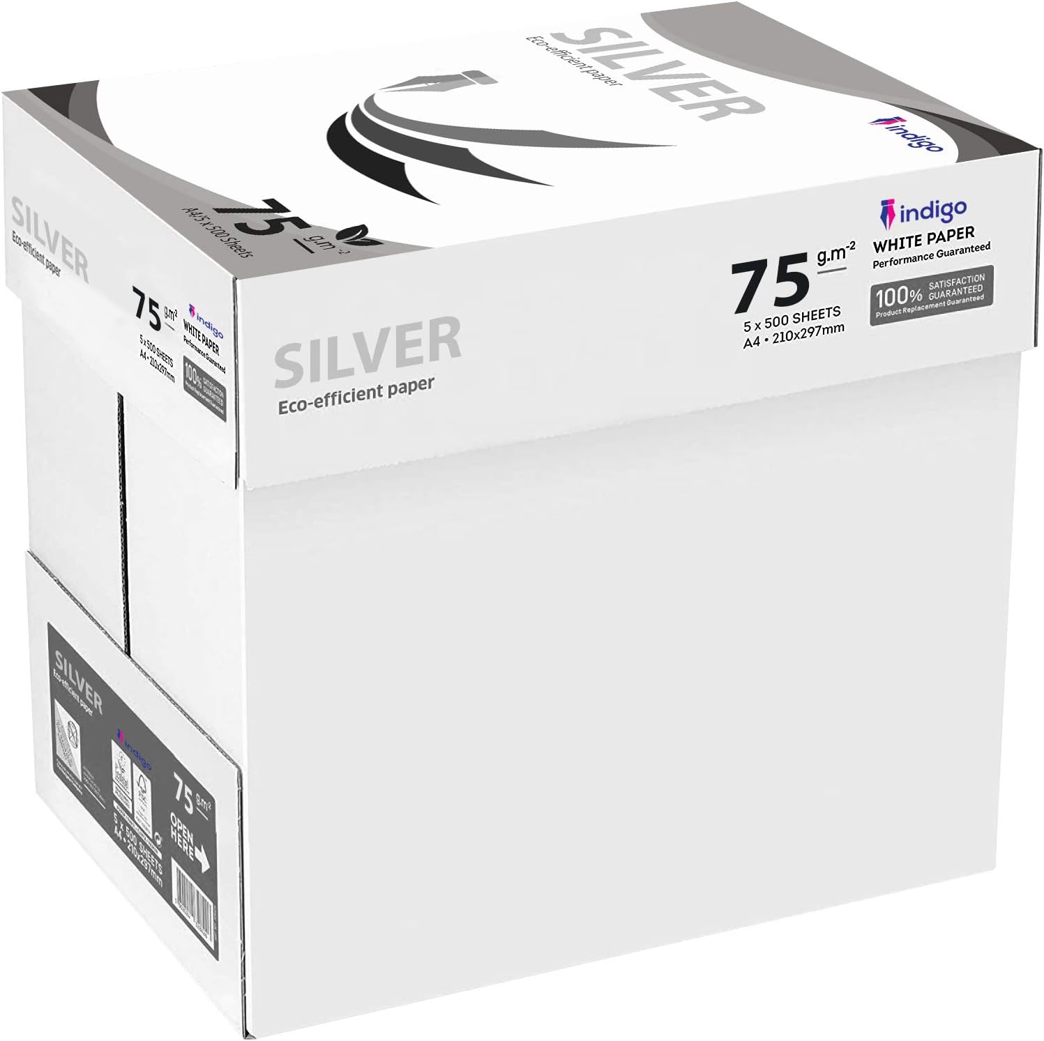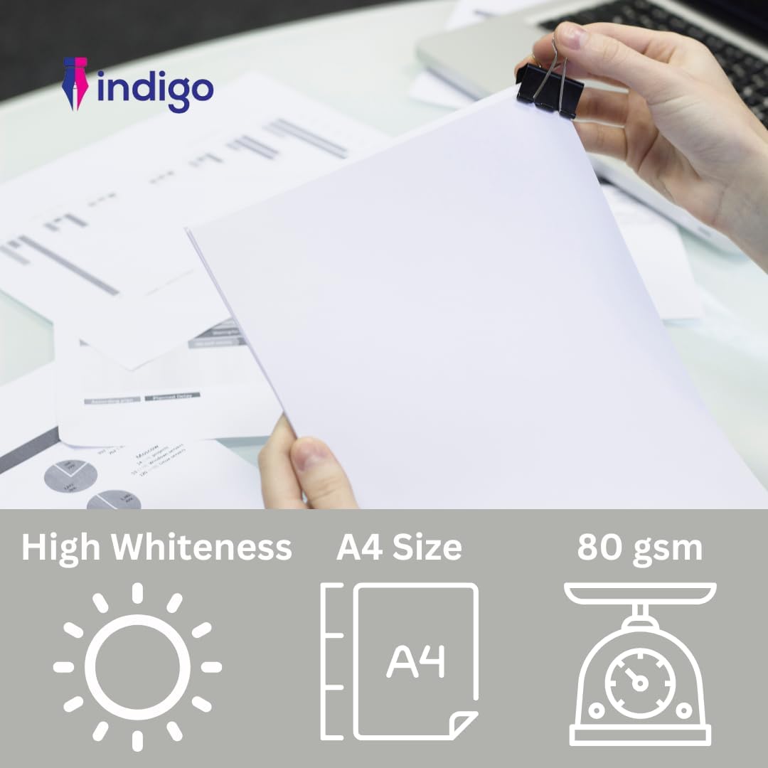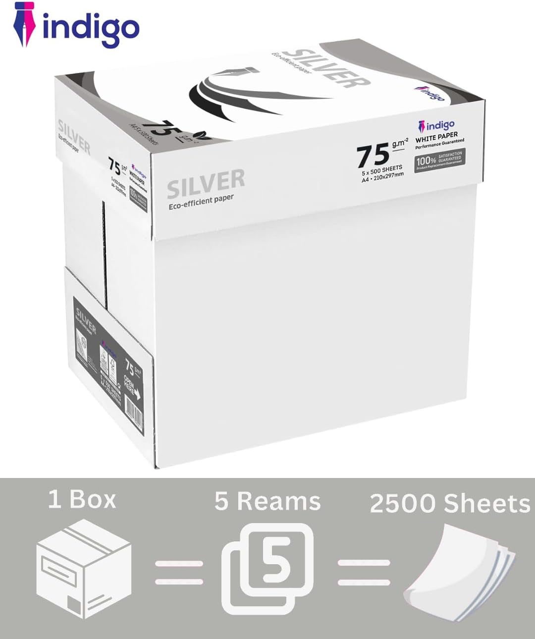 Achieve consistent, professional printing with Indigo® A4 75gsm White Printer Copier Paper. Supplied in a 1 box pack containing 5 reams (500 sheets each, 2,500 sheets total), this multipurpose paper is perfect for everyday office, school, and home use. Its smooth finish and 75gsm weight provide reliable results, whether you’re printing reports, letters, coursework, or bulk documents. Compatible with laser printers, inkjet printers, and photocopiers, it ensures crisp text and sharp images with every page. A practical, eco-friendly choice for all your daily printing needs.