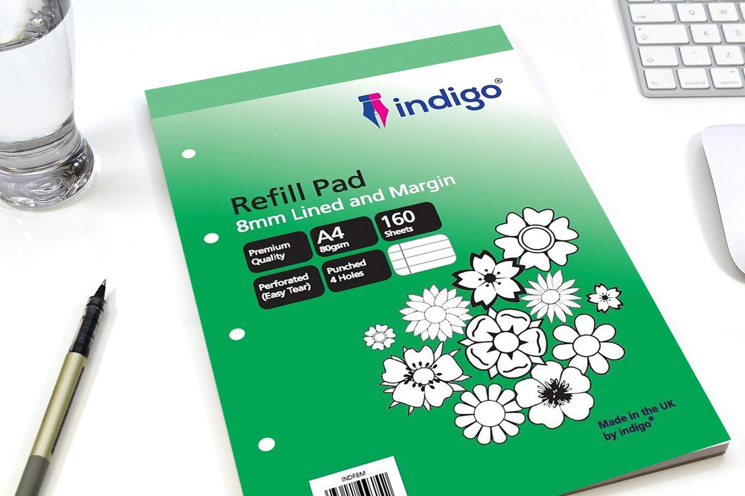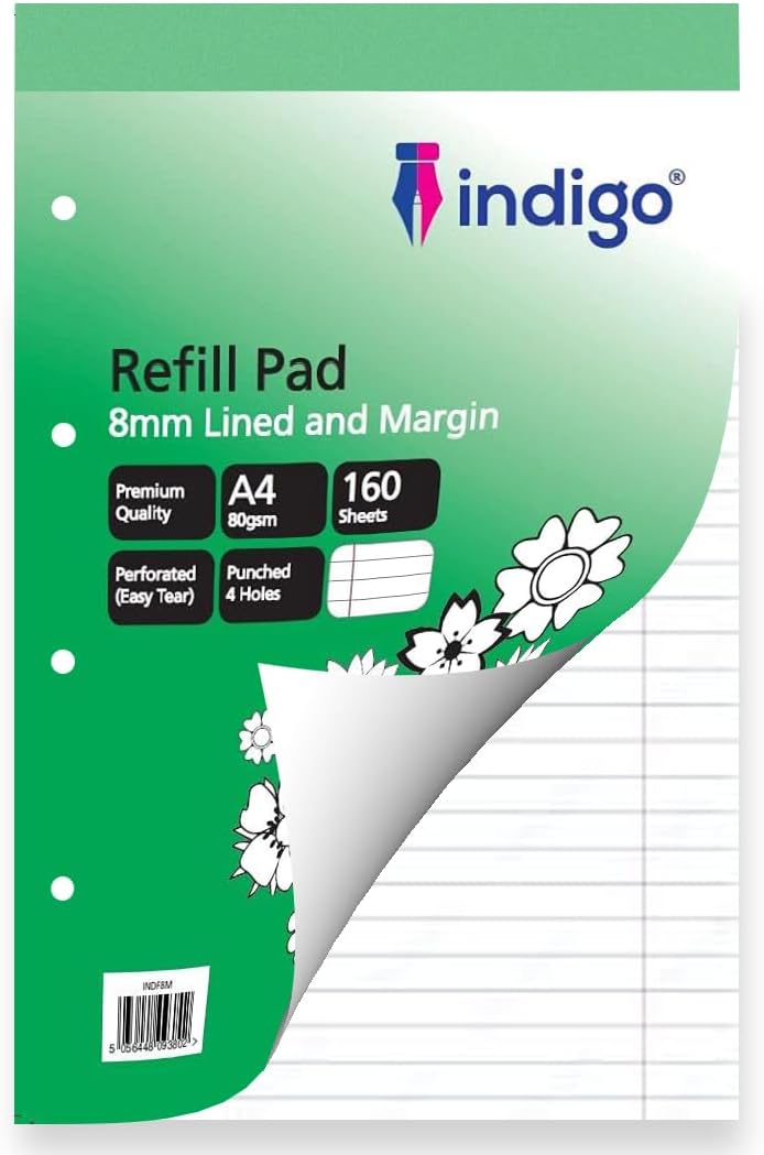 Achieve clear, organised notes with the indigo® A4 Refill Pad – 8mm Lined with Margin, 160 Pages. Perfect for students, teachers, and professionals, this high-quality refill pad features feint 8mm ruled lines with a margin, making it ideal for neat handwriting, structured note-taking, and formal documentation.