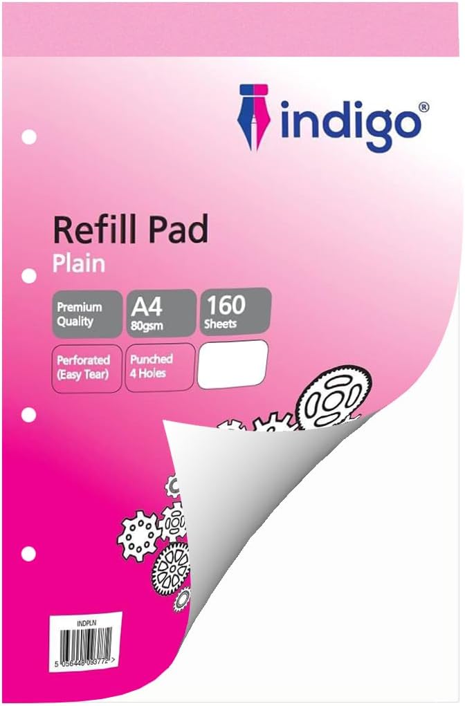 The indigo® A4 Plain Refill Pad offers total flexibility—perfect for sketching concepts, drawing diagrams, or writing without boundaries.