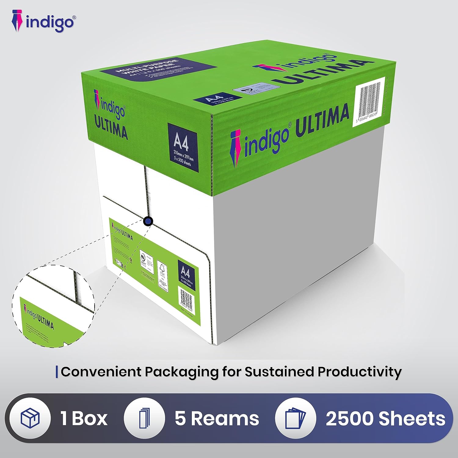 Ensure reliable, everyday printing with Indigo® A4 Ultima White Printer Paper. Supplied in a 1 Box pack containing 5 reams (2,500 sheets), this 70 GSM multipurpose paper is perfect for home, office, or school use. Designed for smooth performance across inkjet, laser, and copier machines, it delivers sharp text and crisp images on every page. With its bright white finish, this paper gives documents a professional appearance—ideal for reports, invoices, letters, and bulk printing tasks. Eco-friendly and versatile, Ultima White is your go-to solution for consistent, high-quality results.