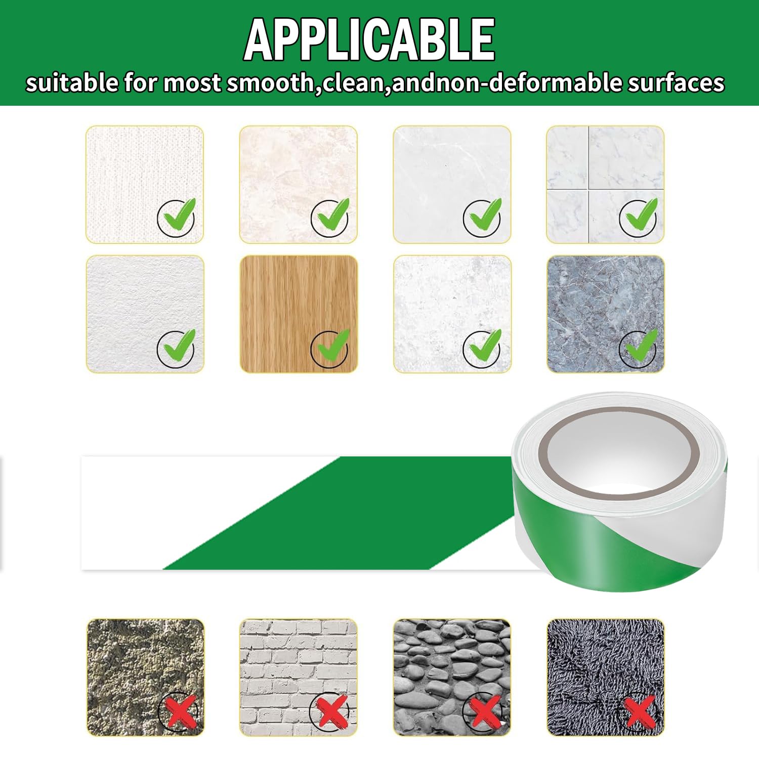 Indigo® Green & White Hazard Safety Floor Marking Tape is a durable, high-visibility solution for creating safe and organised environments. Measuring 50mm wide and 33m long, this heavy-duty tape is designed for marking out walkways, hazard zones, and restricted areas in warehouses, factories, schools, and public spaces. The alternating green and white stripes ensure maximum visibility, making it clear to identify safe routes or highlight important boundaries. With a strong adhesive backing, it bonds securely to a wide range of surfaces including concrete, wood, tiles, and metal. Easy to apply and resistant to everyday wear, Indigo® Hazard Safety Floor Tape provides a long-lasting, professional marking solution for both industrial and commercial use.