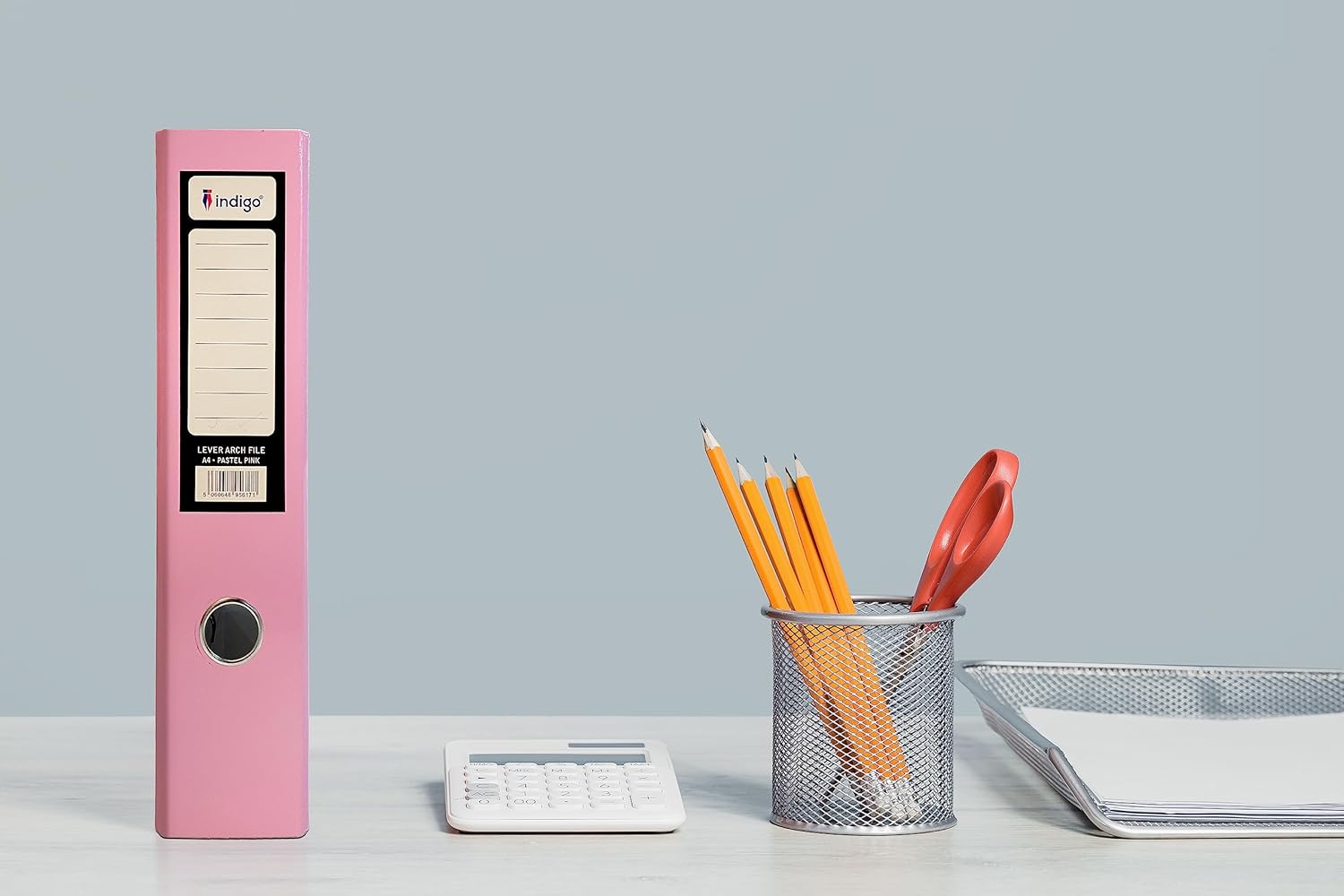 Stay organised in style with the Indigo® Premium A4 Lever Arch Files – 70mm Spine, Pastel Pink (Pack of 5). Designed for everyday office, school, or home use, these durable files combine functionality with a soft pastel finish that brightens up your workspace. Each file is made from strong board with a wipe-clean laminated surface, ensuring long-lasting protection for your important A4 documents. The 70mm spine provides generous storage capacity, ideal for archiving reports, projects, or invoices. With a robust metal lever arch mechanism and reinforced edges, these files offer reliable performance for frequent use. Supplied as a convenient pack of 5, they are perfect for colour-coded organisation or stocking up your filing system.