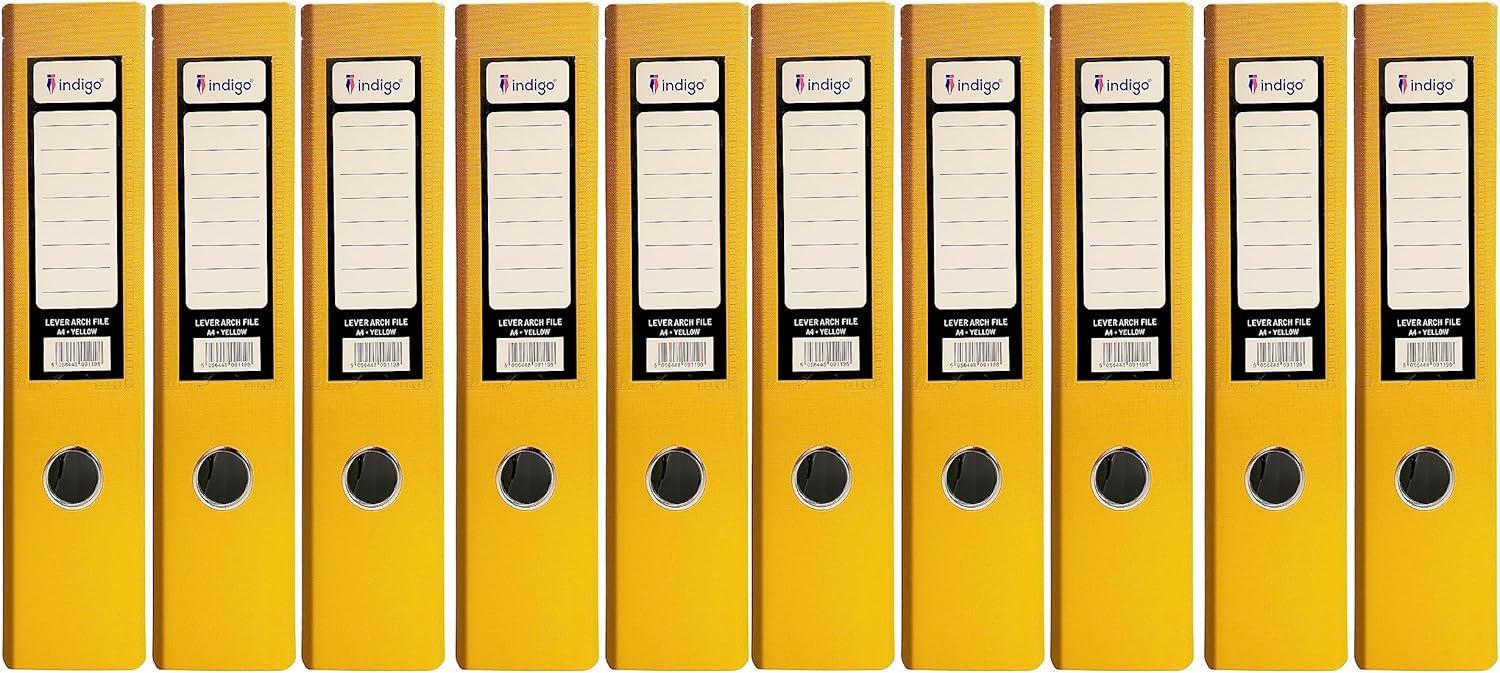 Bring brightness and order to your workspace with the Indigo® Premium A4 Lever Arch Files – 70mm Spine, Yellow (Pack of 10). These robust files are crafted from durable board with a wipe-clean laminated finish, making them both practical and long-lasting. The bold yellow colour is perfect for colour-coded filing systems or simply adding a cheerful touch to your office or classroom. With a wide 70mm spine, each file provides ample capacity for storing up to 500 sheets of A4 paper, keeping documents neatly organised. Featuring a reliable metal lever arch mechanism and reinforced edges, these files are built for frequent use and effortless organisation. Supplied in a convenient pack of 10, they’re ideal for businesses, schools, or home offices needing bulk storage solutions.