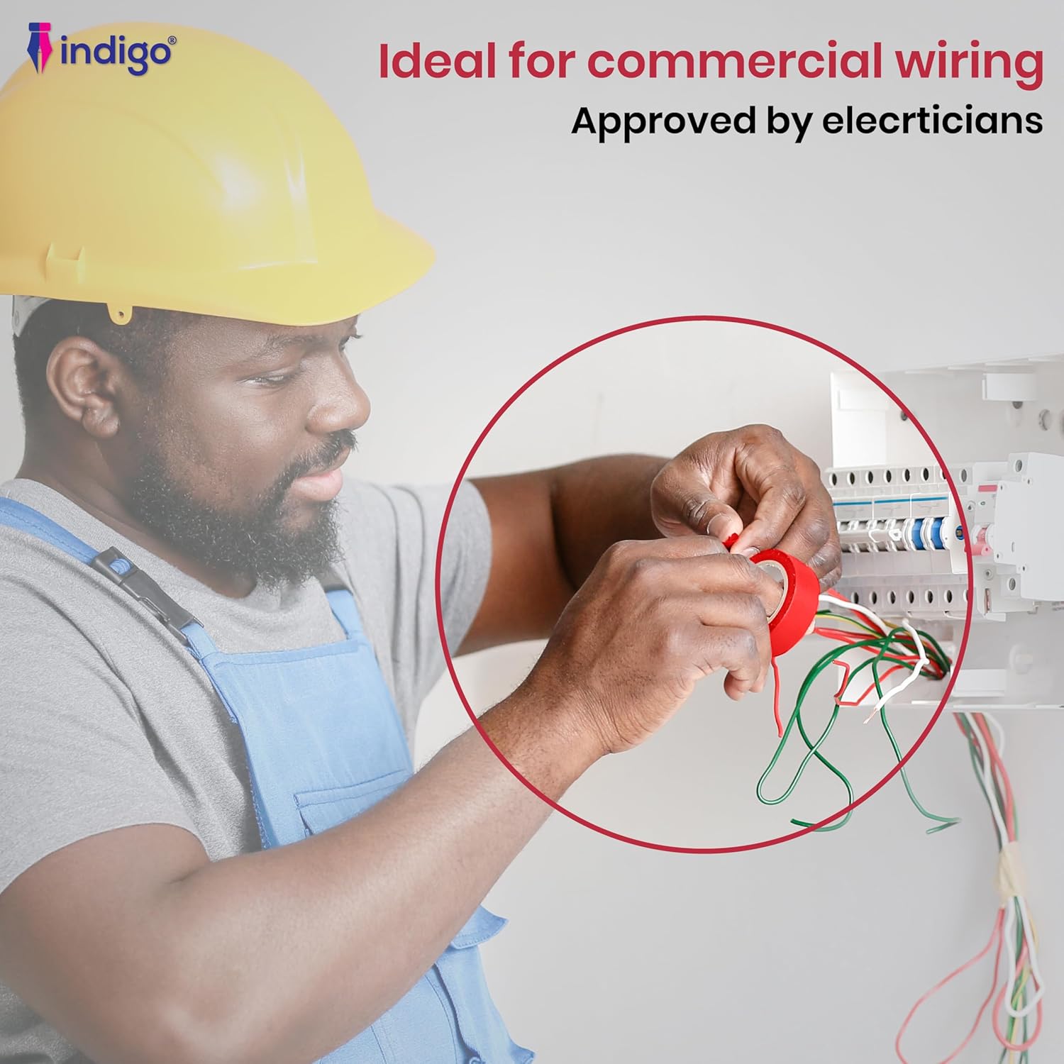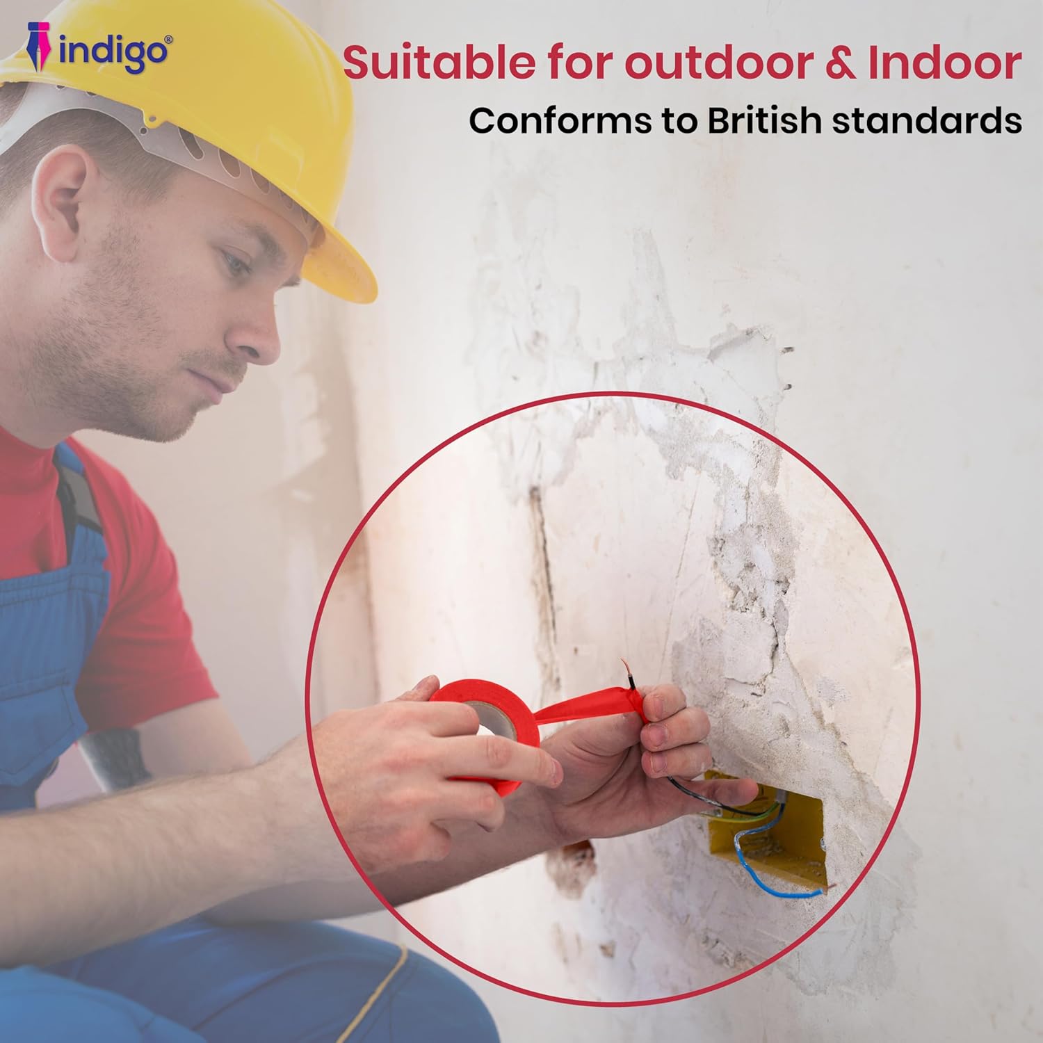 The Indigo® Red Electrical Insulation Tape (19mm x 20m) is a reliable, high-performance solution for electrical insulation, wire bundling, colour coding, and general repairs. Manufactured from durable PVC with strong adhesive properties, this tape offers excellent resistance to abrasion, moisture, acids, alkalis, and varying weather conditions, making it ideal for both indoor and outdoor use. Its flexibility ensures easy handling around wires and irregular surfaces, while maintaining a firm, long-lasting hold. Whether you’re a professional electrician, DIY enthusiast, or simply in need of dependable insulating tape for household repairs, Indigo® delivers safety, strength, and durability in every roll.
