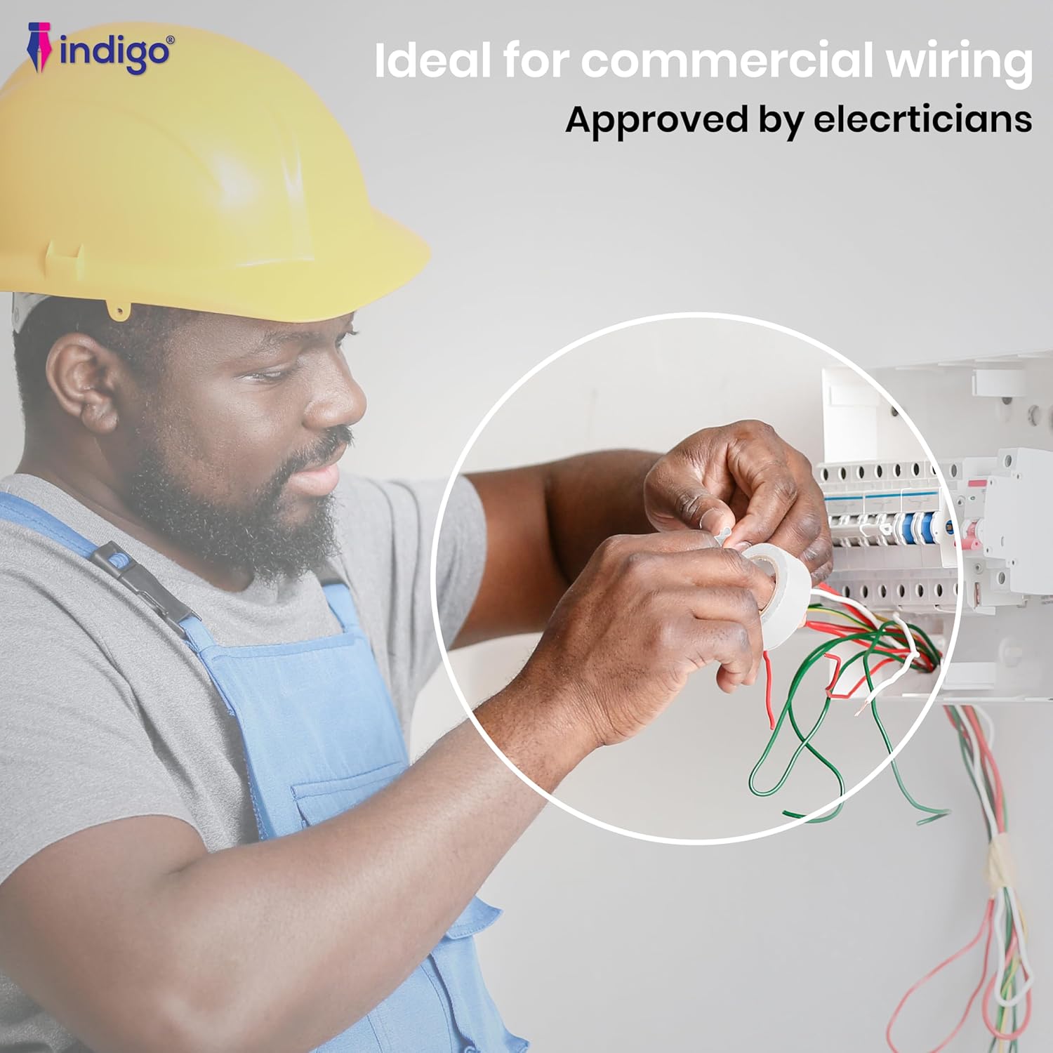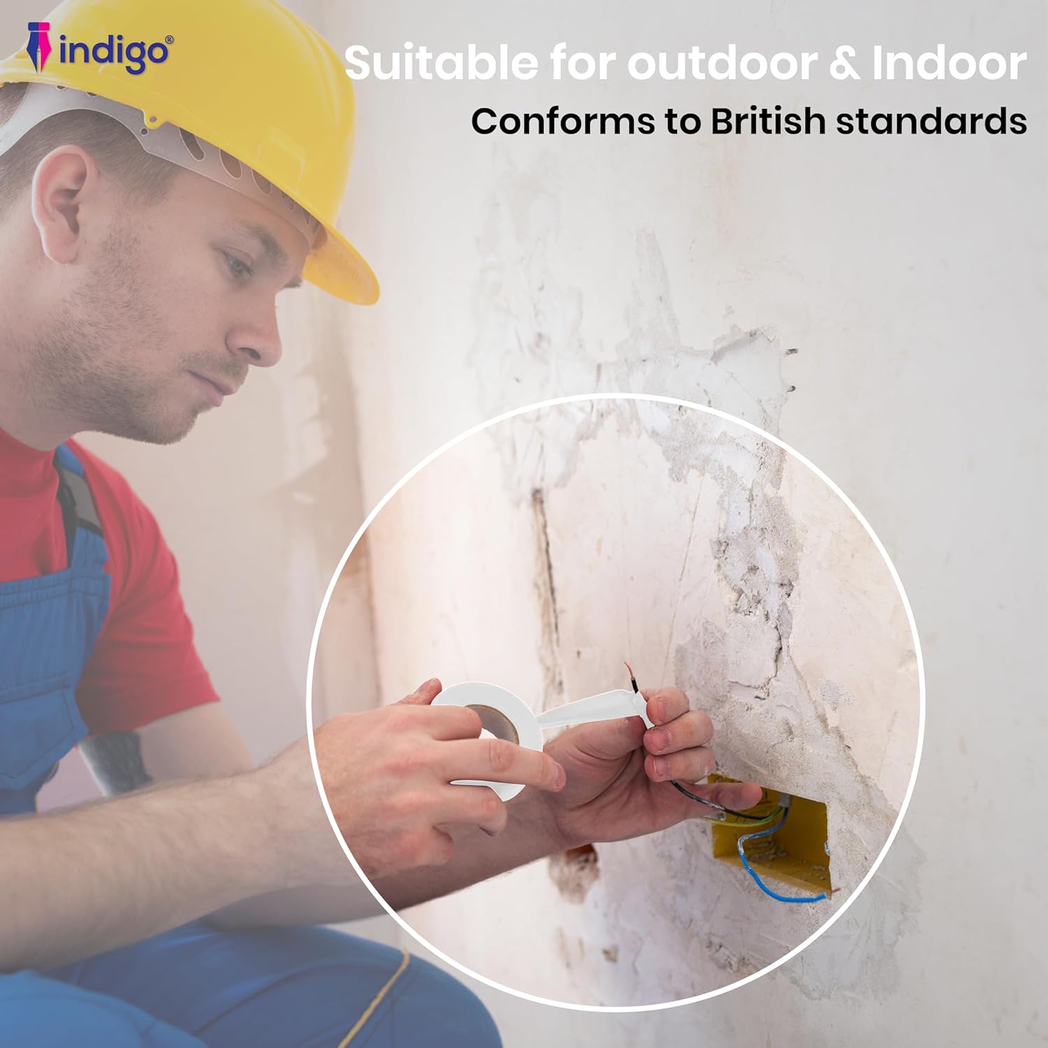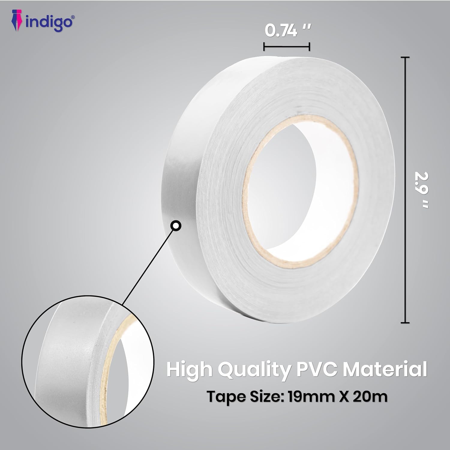 The Indigo® White Electrical Insulation Tape (19mm x 20m) is a reliable, high-performance solution for electrical insulation, wire bundling, colour coding, and general repairs. Manufactured from durable PVC with strong adhesive properties, this tape offers excellent resistance to abrasion, moisture, acids, alkalis, and varying weather conditions, making it ideal for both indoor and outdoor use. Its flexibility ensures easy handling around wires and irregular surfaces, while maintaining a firm, long-lasting hold. Whether you’re a professional electrician, DIY enthusiast, or simply in need of dependable insulating tape for household repairs, Indigo® delivers safety, strength, and durability in every roll.