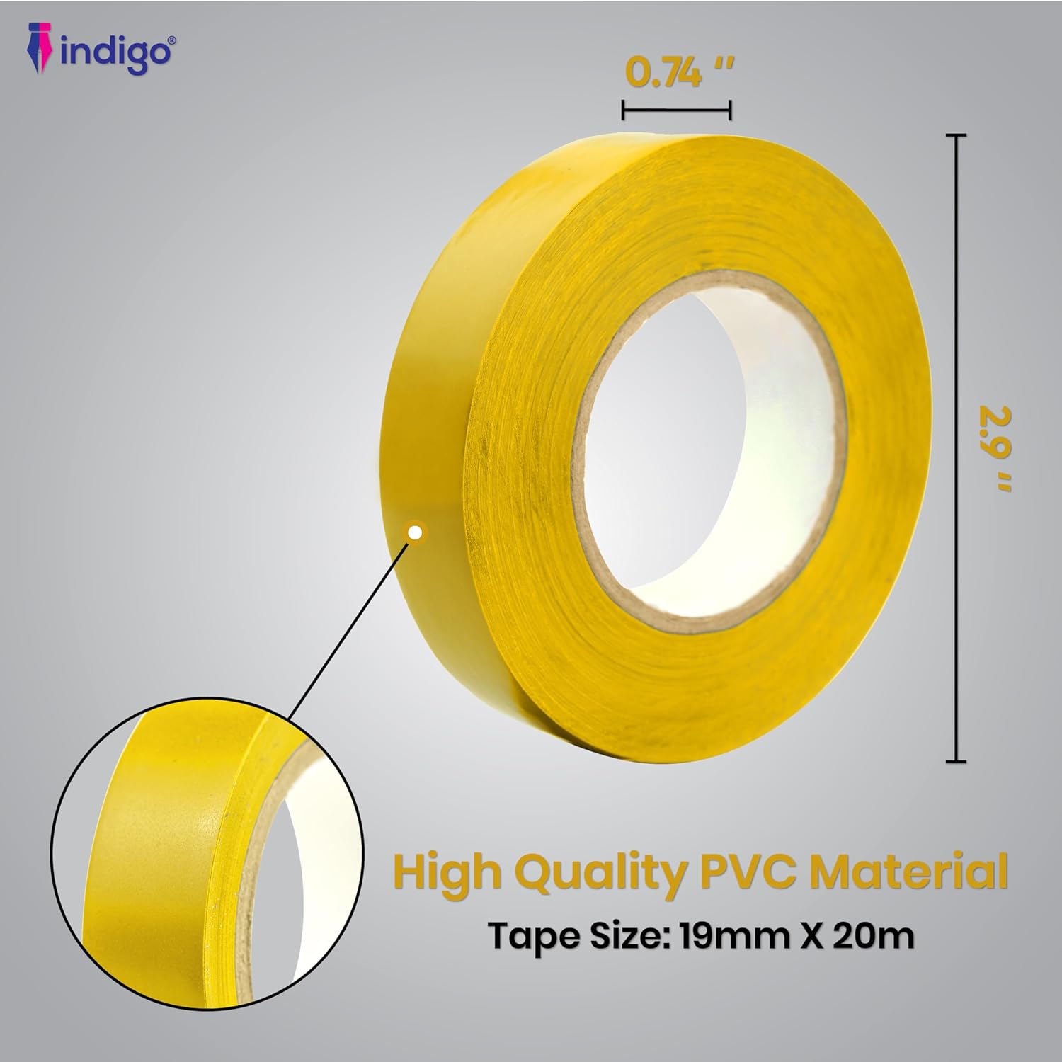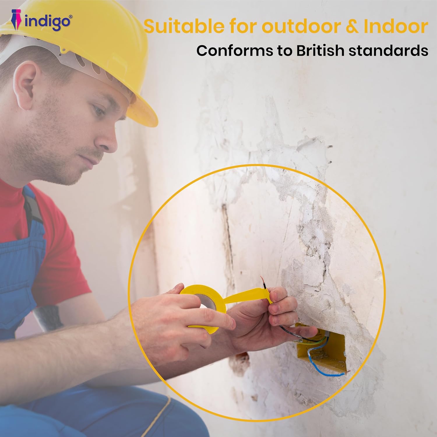 The Indigo® Yellow Electrical Insulation Tape (19mm x 20m) is a reliable, high-performance solution for electrical insulation, wire bundling, colour coding, and general repairs. Manufactured from durable PVC with strong adhesive properties, this tape offers excellent resistance to abrasion, moisture, acids, alkalis, and varying weather conditions, making it ideal for both indoor and outdoor use. Its flexibility ensures easy handling around wires and irregular surfaces, while maintaining a firm, long-lasting hold. Whether you’re a professional electrician, DIY enthusiast, or simply in need of dependable insulating tape for household repairs, Indigo® delivers safety, strength, and durability in every roll.