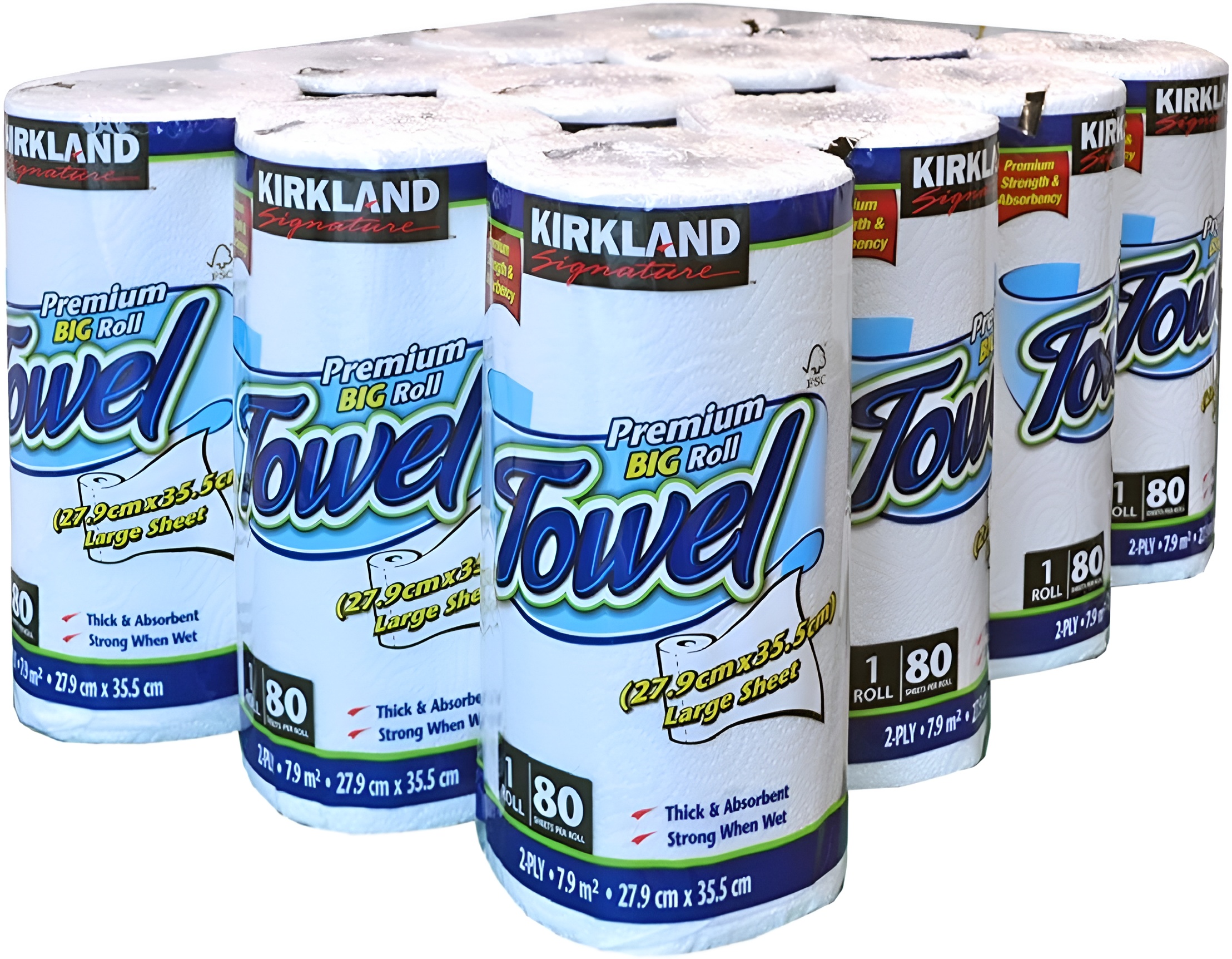 The Kirkland Signature® White Roll Towels – Pack of 12 are strong, absorbent, and reliable for everyday cleaning tasks. Made with 2-ply construction, these kitchen towels deliver durability and superior absorbency, making them perfect for wiping surfaces, soaking up spills, and general household cleaning. Each roll contains 80 sheets, providing excellent value and long-lasting use. Trusted for quality, Kirkland Signature® towels are ideal for busy homes, offices, and catering environments where strength and performance matter most.