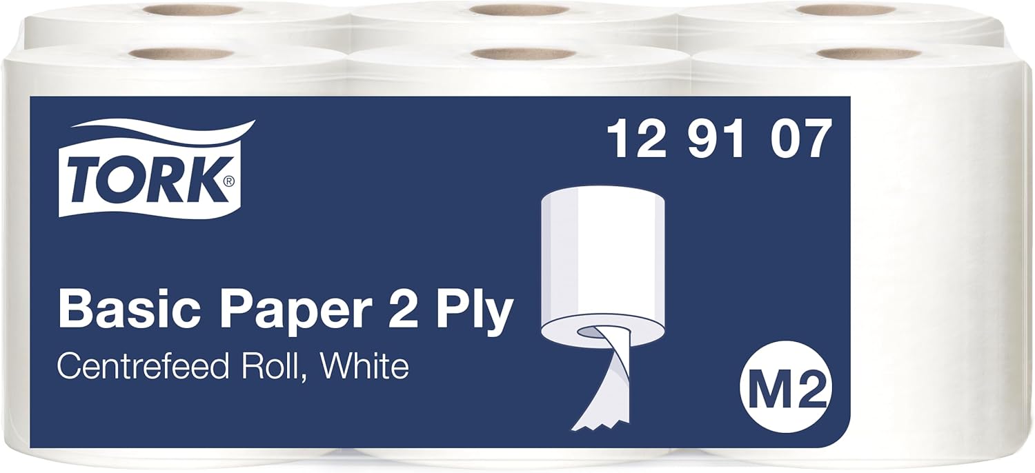 The Tork® Basic Centrefeed Wiping Paper M2 – Pack of 6 provides a practical and reliable solution for everyday cleaning tasks in busy environments. Made from 2-ply absorbent paper, these centrefeed rolls are strong enough to handle spills, wiping, and hand-drying with ease. Each roll is designed for use with the Tork® M2 dispenser system, ensuring quick and convenient one-hand dispensing. Ideal for kitchens, workshops, factories, and commercial spaces, this bulk pack offers both efficiency and excellent value.
